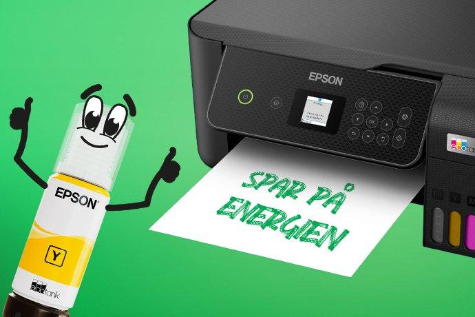 Baseret på Epsons beregninger bruger Epson EcoTank forbrugerprintere til hjemme- og hjemmekontorbrug mindre energi sammenlignet med den gennemsnitlige energi for de 5 mest solgte A4 1-20 sider pr. minut farvemultifunktionslaserprintere i Europa (IDC, Quarterly Hardcopy Peripherals Tracker, 2022 forsendelser, udgivet i 2. kvartal 2023. Strømforbrugsværdier som offentliggjort i producenternes officielle specifikationer.
